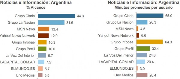 Un estudio realizado por IBOPE Media sobre la penetración de los medios de comunicación reveló que a la hora de la búsqueda de información, el 51 por ciento de los argentinos consulta Internet en primer lugar. De esta manera, se refleja la consolidación de este medio como fuente de información por sobre los medios tradicionales. En este escenario, Internet se ha posicionado en el cuarto lugar del ranking de penetración de medios con un 56 por ciento de preferencia. La lista la encabezan la TV Abierta (95%), la TV Paga (71%) y los Diarios (67%).